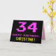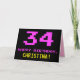 Le recto de cette carte de voeux amusante, geek et nerdy à thème d'anniversaire comporte un grand numéro "34" et le message "HAPPY BANTHDAY", couleur rose, avec un nom de destinataire personnalisé jaune gras. Le texte a un aspect inspiré de celui des graphiques vidéo/jeux vidéo 8 bits classiques des années 1970 et 1980, et l'arrière - plan est noir de couleur. L'intérieur comporte un message d'anniversaire personnalisé, ou pourrait être effacé et laissé vide si un message doit être écrit à la main à la place. Une carte d’anniversaire personnalisée comme celle-ci pourrait être une façon amusante d’envoyer un message célébrant le trente-quatrième anniversaire de quelqu’un. [~Z0000478]