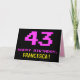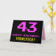 Le devant de cette carte de voeux amusante, nerveuse et geeky à thème d'anniversaire comporte un grand numéro "43" et le message "HAPPY BANTHDAY", couleur rose, avec un nom de destinataire jaune gras personnalisable. Le texte a un look inspiré de celui de 8-bit rétro style ordinateur / jeux vidéo graphiques des années 1970 et 1980, et l'arrière - plan est coloré noir. L'intérieur comporte un message de voeux d'anniversaire personnalisable, ou peut-être pourrait-il être effacé et laissé vide si un message doit être écrit à la main à la place. Une carte d’anniversaire personnalisable comme celle-ci pourrait être une façon amusante d’envoyer un message célébrant le quarante-troisième anniversaire de quelqu’un. [~Z0000478]