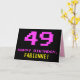 Le recto de cette carte de voeux amusante, geek et nerdy à thème d'anniversaire comporte un grand numéro rose "49", ainsi que le message "HAPPY BANTHDAY," en rose, et un nom de destinataire jaune gras modifiable. Le texte a un look inspiré de celui de 8 bits de style vintage d'ordinateur/jeux vidéo des années 1970 et 1980, et l'arrière - plan est coloré en noir. L'intérieur a un message de voeux d'anniversaire customisé, ou peut-être peut-être être effacé et laissé vide si un message doit être écrit à la main à la place. Une carte d’anniversaire personnalisée comme celle-ci pourrait être une façon amusante d’envoyer un message pour célébrer le quarante-neuvième anniversaire de quelqu’un. [~Z0000478]