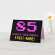 Le recto de cette carte de voeux amusante, geek et nerdy à thème d'anniversaire comporte un grand numéro rose "85", ainsi que le message "HAPPY BANTHDAY," en rose, et un nom de destinataire personnalisé jaune gras. Le texte a un look inspiré de celui des graphismes classiques de style 8 bits d'ordinateur/jeu vidéo des années 1970 et 1980, et l'arrière - plan est noir de couleur. L'intérieur comporte un message de voeux d'anniversaire personnalisable, ou peut-être pourrait-il être effacé et laissé vide si un message doit être écrit à la main à la place. Une carte d’anniversaire personnalisée comme celle-ci pourrait être une façon amusante d’envoyer un message pour célébrer les quatre-vingt-cinq ans de quelqu’un. [~Z0000478]