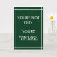 Mettez une touche positive sur le vieillissement avec cette drôle de carte d'anniversaire! "Tu n'es pas VIEILLE. Vous êtes VINTAGE" lit le devant de cette carte de plaisanterie. Le message intérieur dit "Joyeux anniversaire !" mais peut être personnalisé avec votre propre texte, Une carte amusante et cool pour l'antique dans votre vie. Typographie moderne moderne blanche sur riche arrière - plan vert forêt. Humoristique et seulement un peu sarcastique !