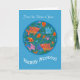 Une carte de vœux amusante de Norooz "De notre maison à la vôtre", avec des poissons colorés nageant dans l'océan, issue d'un collage de papier peint à la main fantaisiste de Judy Adamson. Fait partie de la collection 'Poissons dans la mer' Posh et Painterly. (Carte de devant personnalisée également disponible.)