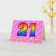 Cette carte de voeux de 21e anniversaire joyeuse et optimisée a une façade avec un grand numéro "21" avec un motif coloré inspiré par l'aspect d'un arc-en-ciel spectre, sur un coeur rose foncé et rose clair forme des arrière - plans motifs rayures. Le recto comporte également le message "Joyeux 21e anniversaire", suivi d'un nom de destinataire personnalisable. L'intérieur comporte un message de voeux d'anniversaire personnalisé, ou peut-être pourrait-il être effacé et laissé vide si un message doit être écrit à la main à la place. Une carte d’anniversaire personnalisable comme celle-ci pourrait être une façon amusante et heureuse de reconnaître le vingt et unième anniversaire de quelqu’un. [~Z0000418]