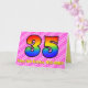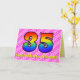 Cette carte de voeux de 35e anniversaire joyeuse et amusante a une façade avec un grand numéro "35" ayant un motif coloré à spectre arc-en-ciel inspiré de dégradé, sur un amusant coeur rose clair et rose foncé forme un arrière - plan motif rayé. Le recto comporte également le message "Joyeux 35e anniversaire", suivi d'un nom de destinataire personnalisé. L'intérieur comporte un message de voeux d'anniversaire customisé, ou peut-être pourrait-il être effacé et laissé vide si un message doit être écrit à la main à la place. Une carte d'anniversaire comme celle-ci pourrait être une façon amusante et heureuse d'envoyer des voeux d'anniversaire à quelqu'un qui célèbre son trente-cinquième anniversaire. [~Z0000418]