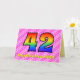 Ce design de carte de voeux de 42ème anniversaire heureux et amusant a un avant avec un grand numéro "42" ayant un motif coloré inspiré par l'apparence d'un arc-en-ciel, sur un joyeux rose clair et rose foncé des formes arrière - plan motif rayé. Le recto contient également le message "Happy 42nd Birthday", ainsi qu'un nom de destinataire personnalisable. L'intérieur comporte un message d'anniversaire personnalisé, ou pourrait être effacé et laissé vide si un message doit être écrit à la main à la place. Une carte d’anniversaire personnalisable comme celle-ci pourrait être une façon amusante et heureuse de reconnaître le quarante-deuxième anniversaire de quelqu’un. [~Z0000418]