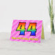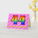 Ce design joyeux et amusant de carte de voeux de 44e anniversaire a un avant avec un grand numéro "44" ayant un motif coloré du spectre arc-en-ciel inspiré du dégradé, sur un coeur rose clair et rose foncé forme un arrière - plan motif rayé. Le recto comporte également le message "Joyeux 44e anniversaire", ainsi qu'un nom de destinataire personnalisé. L'intérieur comporte un message de voeux d'anniversaire personnalisable, ou peut-être pourrait-il être effacé et laissé vide si un message doit être écrit à la main à la place. Une carte d'anniversaire comme celle-ci pourrait être une façon amusante et heureuse d'envoyer des voeux d'anniversaire à quelqu'un qui célèbre son quarante-quatrième anniversaire. [~Z0000418]