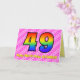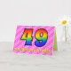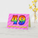 Ce design festif et joyeux de carte de voeux de 49e anniversaire a un avant avec un grand numéro "49" ayant un motif coloré du spectre arc-en-ciel inspiré dégradé, sur un amusant rose clair et rose foncé formes coeur rayé arrière - plan motif. Le recto comporte également le message "Joyeux 49e anniversaire", suivi d'un nom de destinataire personnalisable. L'intérieur comporte un message d'anniversaire personnalisé, ou pourrait être effacé et laissé vide si un message doit être écrit à la main à la place. Une carte d'anniversaire personnalisée comme celle-ci pourrait être une façon amusante et heureuse d'envoyer des voeux d'anniversaire à quelqu'un qui célèbre son quarante-neuvième anniversaire. [~Z0000418]