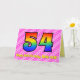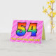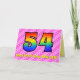 Ce design amusant et optimisé de carte de voeux 54e anniversaire a un front avec un grand numéro "54" ayant un motif coloré inspiré par l'apparence d'un arc-en-ciel spectre, sur un coeur rose foncé et rose clair forme des bandes arrière - plan motif. Le recto comporte également le message "Joyeux 54e anniversaire", suivi d'un nom de destinataire personnalisé. L'intérieur comporte un message de voeux d'anniversaire personnalisable, ou peut-être pourrait-il être effacé et laissé vide si un message doit être écrit à la main à la place. Une carte d'anniversaire personnalisable comme celle-ci pourrait être une façon amusante et heureuse d'envoyer des voeux d'anniversaire à quelqu'un qui célèbre son cinquante-quatrième anniversaire. [~Z0000418]