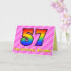 Ce design amusant et optimisé de carte de voeux 57ème anniversaire a un front avec un grand numéro "57" ayant un motif coloré inspiré par l'apparence d'un arc-en-ciel spectre, sur un amusant coeur rose foncé et rose clair forme des bandes arrière - plan motif. Le recto comporte également le message "Joyeux 57e anniversaire", ainsi qu'un nom de destinataire modifiable. L'intérieur comporte un message de voeux d'anniversaire customisé, ou peut-être pourrait-il être effacé et laissé vide si un message doit être écrit à la main à la place. Une carte d’anniversaire personnalisable comme celle-ci pourrait être une façon amusante et heureuse de reconnaître le cinquante-septième anniversaire de quelqu’un. [~Z0000418]