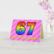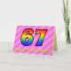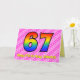 Ce design de carte de voeux de 67ème anniversaire, optimiste et festif, a une façade avec un grand numéro "67" avec un motif coloré inspiré de l'apparence d'un arc-en-ciel, sur un coeur rose clair et rose foncé forme des rayures arrière - plan motif. Le recto comporte également le message "Joyeux 67e anniversaire", suivi d'un nom de destinataire personnalisé. L'intérieur comporte un message de voeux d'anniversaire customisé, ou peut-être pourrait-il être effacé et laissé vide si un message doit être écrit à la main à la place. Une carte d’anniversaire personnalisable comme celle-ci pourrait être une façon amusante et heureuse d’envoyer un message pour célébrer le soixante-septième anniversaire de quelqu’un. [~Z0000418]