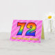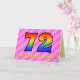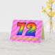 Ce design amusant et heureux de carte de voeux 72ème anniversaire a un front avec un grand numéro "72" ayant un motif coloré inspiré par l'aspect d'un arc-en-ciel spectre, sur un coeur rose clair et rose foncé forme des bandes arrière - plan motif. Le recto comporte également le message "Joyeux 72e anniversaire", suivi d'un nom de destinataire personnalisé. L'intérieur comporte un message de voeux d'anniversaire personnalisé, ou peut-être pourrait-il être effacé et laissé vide si un message doit être écrit à la main à la place. Une carte d’anniversaire personnalisable comme celle-ci pourrait être une façon amusante et heureuse d’envoyer un message pour célébrer le soixante-douzième anniversaire de quelqu’un. [~Z0000418]