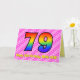 Ce design amusant et festif de carte de voeux de 79e anniversaire a un avant avec un grand numéro "79" ayant un motif coloré du spectre arc-en-ciel inspiré du gradient, sur un amusant rose foncé et rose clair du coeur formes motif rayé arrière - plan. Le recto comporte également le message "Joyeux 79e anniversaire", suivi d'un nom de destinataire modifiable. L'intérieur comporte un message de voeux d'anniversaire modifiable, ou peut-être pourrait-il être effacé et laissé vide si un message doit être écrit à la main à la place. Une carte d'anniversaire personnalisée comme celle-ci pourrait être une façon amusante et heureuse d'envoyer des voeux d'anniversaire à quelqu'un qui célèbre son soixante-dix-neuvième anniversaire. [~Z0000418]