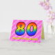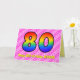 Cette carte de voeux de 80ème anniversaire, optimiste et festive, a une façade avec un grand numéro "80" avec un motif coloré inspiré de l'aspect d'un arc-en-ciel, sur un coeur rose foncé et rose clair joyeux forme des arrière - plans motifs rayés. Le recto comporte également le message "Joyeux 80e anniversaire", suivi d'un nom de destinataire modifiable. L'intérieur comporte un message de voeux d'anniversaire personnalisé, ou peut-être pourrait-il être effacé et laissé vide si un message doit être écrit à la main à la place. Une carte d'anniversaire personnalisée comme celle-ci pourrait être une façon amusante et heureuse d'envoyer des voeux d'anniversaire à quelqu'un qui célèbre son quatre-vingtième anniversaire. [~Z0000418]