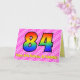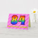 Ce design de carte de voeux de 84ème anniversaire heureux et amusant a un avant avec un grand numéro "84" ayant un motif coloré inspiré par l'aspect d'un arc-en-ciel, sur un coeur rose clair et rose foncé forme des bandes arrière - plan motif. Le recto contient également le message "Joyeux 84e anniversaire", ainsi qu'un nom de destinataire modifiable. L'intérieur comporte un message d'anniversaire personnalisé, ou pourrait être effacé et laissé vide si un message doit être écrit à la main à la place. Une carte d'anniversaire personnalisable comme celle-ci pourrait être une façon amusante et heureuse d'envoyer des voeux d'anniversaire à quelqu'un qui célèbre son quatre-vingt-quatrième anniversaire. [~Z0000418]