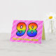 Cette carte de voeux joyeux et joyeuse 98ème anniversaire design a une façade avec un grand numéro "98" ayant un motif coloré inspiré par l'apparence d'un arc-en-ciel spectre, sur un amusant coeur rose foncé et rose clair forme un arrière - plan motif rayé. Le recto comporte également le message "Joyeux 98e anniversaire", ainsi qu'un nom de destinataire personnalisé. L'intérieur comporte un message de voeux d'anniversaire customisé, ou peut-être pourrait-il être effacé et laissé vide si un message doit être écrit à la main à la place. Une carte d'anniversaire personnalisée comme celle-ci pourrait être une façon amusante et heureuse d'envoyer des voeux d'anniversaire à quelqu'un qui fête son quatre-vingt-dix-huitième anniversaire. [~Z0000418]