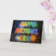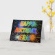 Ce design de carte vibrant, multicolore et d'amusement d'anniversaire de salutation comporte le message "JOYEUX ANNIVERSAIRE," et le prénom commun "ÉRIC" avec les lettres ayant un spectre coloré d'arc-en-ciel comme le motif de coloration de gradient. L'arrière - plan de l'avant comporte également un motif coloré inspiré par l'aspect d'éclater des feux d'artifice. Les caractéristiques intérieures un message personnalisable de salutation, ou pourraient peut-être être dégagées et sont parties du blanc si un message doit être écrit à la main à la place. Une carte de voeux d'anniversaire comme ceci a pu être amusement pour donner à quelqu'un Éric appelé sur leur anniversaire. [~Z0000350]