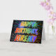 Cet amusement, design de carte vibrant et multicolore de salutation d'anniversaire comporte le message "JOYEUX ANNIVERSAIRE," et le prénom commun "JEREMY" avec les lettres ayant un spectre coloré d'arc-en-ciel comme le motif de coloration de gradient. L'arrière - plan de l'avant comporte également un motif coloré inspiré par l'aspect d'éclater les feux d'artifice de célébration. Les caractéristiques intérieures un message fait sur commande de salutation, ou pourraient peut-être être dégagées et sont parties du blanc si un message doit être écrit à la main à la place. Une carte de voeux d'anniversaire comme ceci a pu être une manière d'amusement d'envoyer à un message personnalisable de salutation d'anniversaire à quelqu'un Jeremy appelé. [~Z0000350]