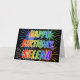 Ce design de carte multicolore et d'amusement d'anniversaire de salutation comporte le message "JOYEUX ANNIVERSAIRE," et le prénom commun "SELENA" avec les lettres ayant un spectre coloré d'arc-en-ciel comme le motif de coloration de gradient. L'arrière - plan de l'avant comporte également un motif coloré inspiré par l'aspect d'éclater les feux d'artifice de célébration. Les caractéristiques intérieures un message personnalisable de salutation, ou pourraient peut-être être dégagées et sont parties du blanc si un message doit être écrit à la main à la place. Une carte de voeux comme ceci a pu être une manière d'amusement de célébrer l'anniversaire de quelqu'un Selena appelé. [~Z0000350]