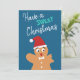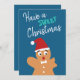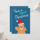 Ayez une carte de voeux de Noël amusant avec un mignon homme en pain d'épice mordant avec un casquette rouge et une cravate arc blanc.
