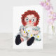 Poupée vieille chiffon avec marguerites blanches et lunettes noires sur arrière - plan blanc.