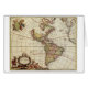 Illustration ancienne carte antique des Amériques par Johannes De Ram (1648-1693), vers 1685. Une belle carte représentant les continents de l'Amérique du Nord, de l'Amérique centrale et de l'Amérique du Sud. Une caractéristique distinctive de cette carte montre la Californie comme une île. L'encart en haut à gauche montre quelques personnages mythologiques dont un ange et l'encart en bas à gauche montre une scène avec des autochtones.