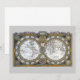 Illustration vintage d'une carte ancienne du monde représentant les deux hémisphères par Claude Auguste Berey, 1688. Cette ancienne carte du monde internationale présente les hémisphères oriental et occidental, ainsi que les pôles nord et sud et tous les continents. Des encadrés entourent les hémisphères de cet atlas, une bordure dorée ornée décore les bords et un parchemin décoratif est en haut.