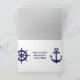 Ce dessin décoratif présente à la fois une ancre bleu marine foncé et un gouvernail de navire avec des rayures grises et blanches. L'illustration nautique crée une carte de vœux moderne et unique avec un texte personnalisé et une couleur de fond.