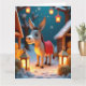 Un âne paisible portant une couverture à selle rouge se dresse au milieu de lanternes brillantes et d'étoiles stables dans ce design d'art en papier 3D chaleureux. Parfait pour les cartes de Noël inspirées de la nativité.