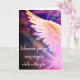 Surround someone with peace, light, and love with this beautifully designed angel note card. Featuring a large, graceful angel wing set against a soft, ethereal pink and purple background, this artwork carries a spiritual reminder that “Angels walk with you”—bringing comfort, protection, and divine presence. Using the edit tool, you can delete or add message.