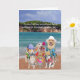 Carte humoristique avec tout le monde habillé tropical. Vous pouvez customiser le texte, les polices, les tailles et les couleurs des polices. L'image de la plage arrière - plan est grâce aux publicdomainpictures.