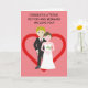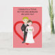 Cette belle carte est pour ce couple spécial. Peut-être que vous étiez là pour leur jour de mariage ou peut-être pas, mais peu importe que vous vouliez leur envoyer une carte qui indique à quel point vous vous souciez. A l'extérieur est un design amusant d'une mariée élégante et mariée, mais ils sont comme des dessins animés mais adorables et heureux. C'est mignon, avec des touches amusantes mais surtout moderne. Sur le dos est un design de coeur, mais nous vous encourageons à le remplacer par une photo de vous-même pour le rendre plus personnel. A l'intérieur nous avons écrit juste le bon message pour parler au moment ; mais juste en coque il a besoin de quelque chose de personnel, vous pouvez le customiser avec vos propres mots.