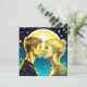 Personnalisé anime turquoise fille et garçon moment romantique debout devant les étoiles et pleine lune. Carte Saint Valentin.