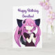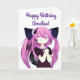 Une grande carte d'anniversaire personnalisée pour une fille qui aime l'anime, les chats et la musique ou les jeux ! Page de coloriage à l'intérieur.