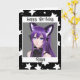 mignonne mauve et noire fille anime avec des oreilles de renard carte d'anniversaire personnalisée.