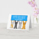 Four cute cartoon kittens standing on their back paws up a turquoise sign that says 'Joyeux anniversaire to my favorite leapling'.