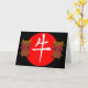 Nouvel An chinois du bœuf avec symbole de caractère et animal de dessin animé illustré sur fond rouge et noir.