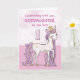 Une jolie petite licorne rose tout comme votre filleule gambade avec le numéro un ! Des détails de couleur or brillant sont tissés dans sa crinière et sa queue. Carte parfaite pour souhaiter son 1er anniversaire à votre filleule !