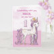 Un doux poney rose tout comme votre nièce caracole avec le numéro un ! Des détails dorés sont tissés dans sa crinière et sa queue. Carte parfaite pour souhaiter son 1er anniversaire à votre nièce !