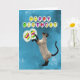 Un chat siamois ludique poursuivant des ballons. Un excellent moyen pour un amoureux des chats d'envoyer une carte d'anniversaire.