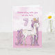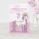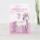 Un doux poney rose comme une fille spéciale qui caracole avec le numéro sept ! Des détails dorés sont tissés dans sa crinière et sa queue. Carte parfaite pour souhaiter à n'importe quelle fille son 7ème anniversaire !