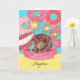 Carte de voeux d'anniversaire colorée et amusante avec un thème beignet. De délicieux beignets délicieux et délicieux avec des bougies scintillantes sont présentés sur la couverture. Ajoutez un nom sur la couverture pour une carte personnalisée. Art, image, et verse © copyright Shoaff Ballanger Studios, 2022.
