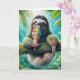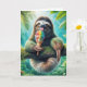 Une paresse est perchée sur une branche recouverte de mousse, jouissant d'un cône de glace arc-en-ciel dans un cadre luxuriant de jungle. Tout le texte peut être modifié.