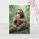 Une paresse est perchée sur une branche recouverte de mousse, jouissant d'un cône de glace arc-en-ciel dans un cadre luxuriant de jungle. Tout le texte peut être modifié.