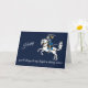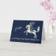 Carte de vœux d'anniversaire de mariage de femme à mari, réalisée dans un bleu foncé avec des illustrations de dessin animé d'un chevalier en armure chevauchant un cheval blanc. Personnalisez le texte, à l'intérieur et à l'extérieur, pour qu'il dise ce que vous voulez.