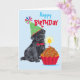 Joyeux voeux d'anniversaire avec ce design mignon avec un chiot Kerry Blue Terrier souriant et portant le casquette de fête avec un cupcake d'anniversaire. Le texte peut être facilement changé; il suffit de cliquer sur le bouton personnaliser.
