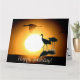 Les oiseaux impressionnants de grue de Sandhill volant, et se tenant toujours en eau peu profonde, devant la lumière intense d'un Sun énorme en silhouette, art numérique composé de la photographie, est sur cette grande carte de voeux de joyeux anniversaire. Un autre fonctionnement merveilleux à l'image de grues de décollage est sur l'intérieur.