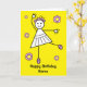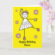 Dessin animé mignon d'une fille bâton souriante et dansant le ballet avec des chaussures de ballet roses. Elle est entourée de fleurs. La carte a un fond jaune vif, mais il est facile de le modifier pour une couleur différente ou un blanc minimal agréable. Personnalisez facilement cette carte en modifiant le texte du modèle sur le devant et à l'intérieur. Joli dessin amusant pour les enfants. Merci de regarder mes créations !