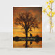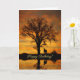 Carte d'anniversaire avec un cheval et un chêne dans un lever de soleil et un étang. Une belle carte de la nature et une excellente façon de dire Joyeux Anniversaire et de passer une belle journée !