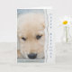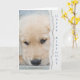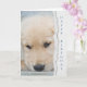 fermez-vous du chiot de golden retriever avec la frontière déchirée de bord pour l'anniversaire