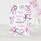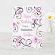 Carte d'anniversaire pour cousin avec tourbillons et fleurs violets et noirs et verset réfléchis.